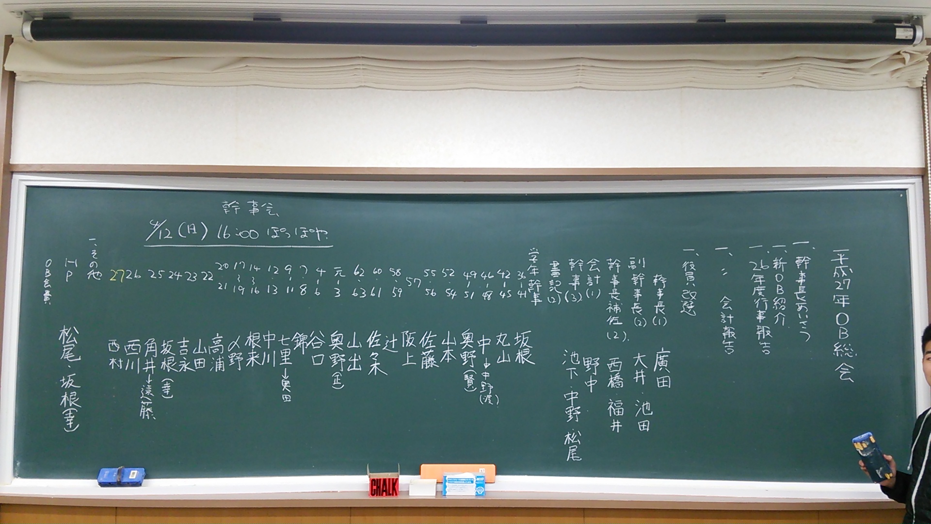 毎年の役割決めを、和気あいあいと決め、現役に挨拶に行きました!