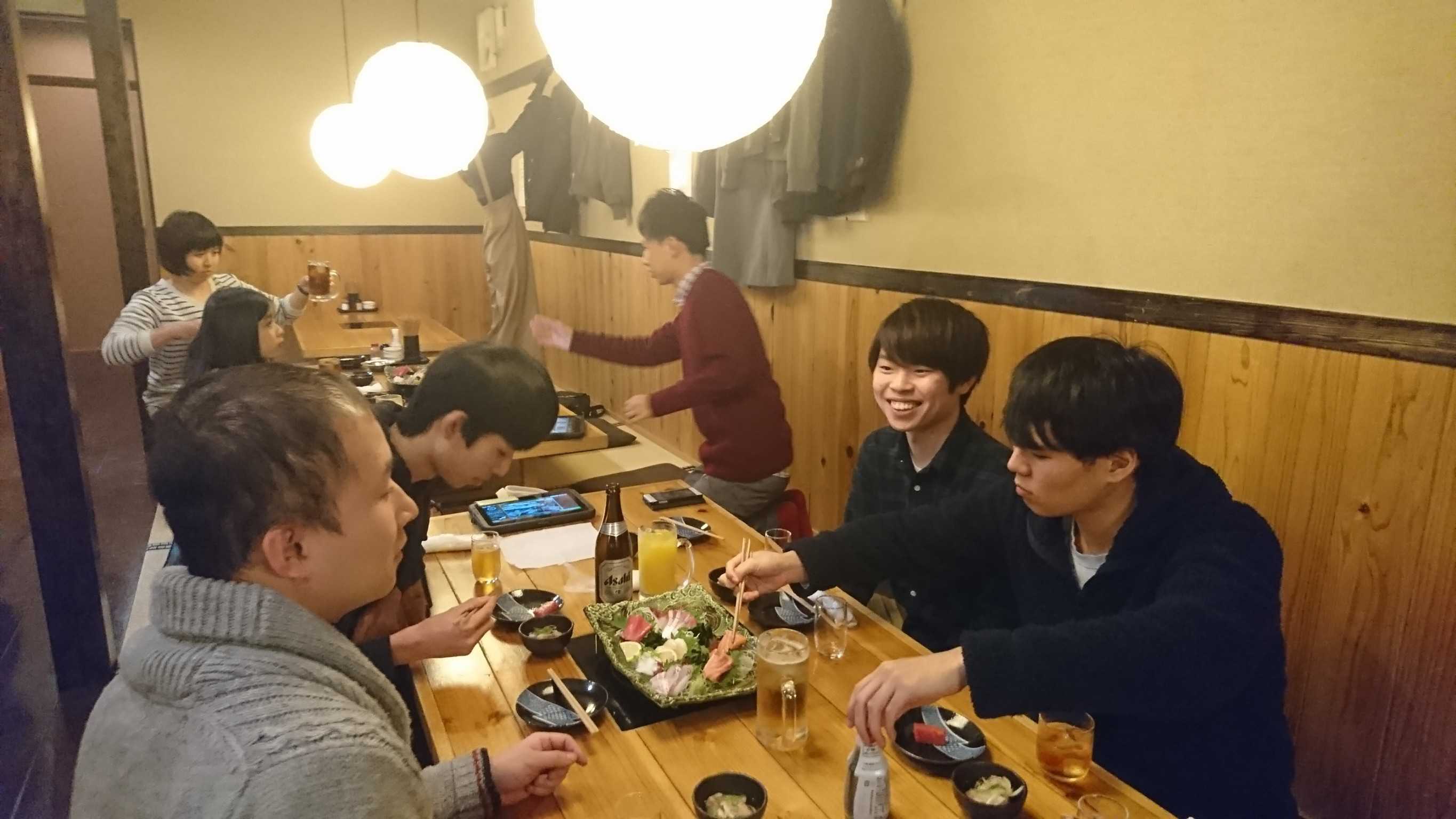 今年の歓迎会は、平成30年5月13日に例年通り、居酒屋なかたで行いました。